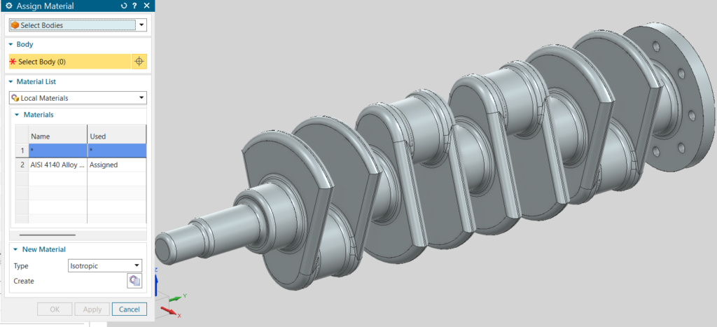 Material considered: Alloy Steel (AISI 4140) commonly used in crankshaft manufacturing.