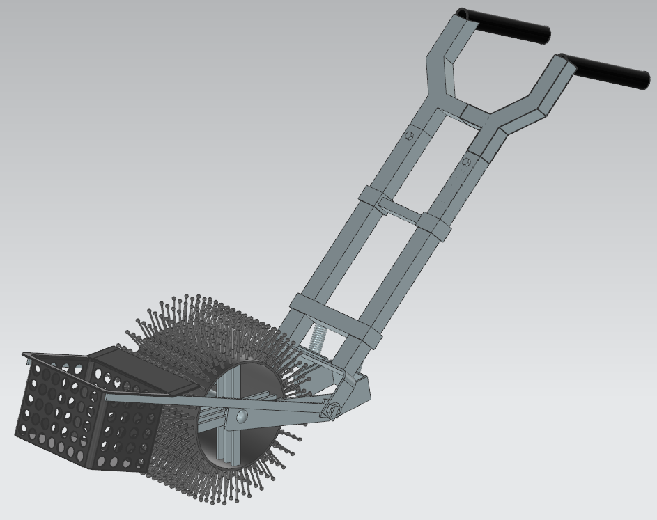 - The operator pushes the collector across the field surface, causing the spiked drum to turn.