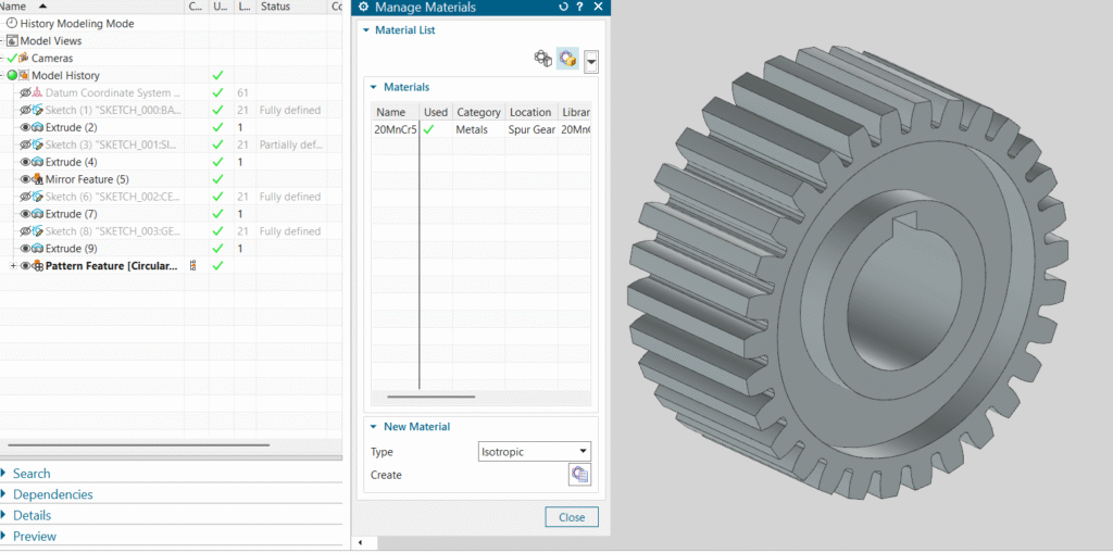 - The side faces are flat, with full-depth teeth across the face width, giving good load-carrying capacity and easy manufacturability on standard gear hobbing or shaping machines.